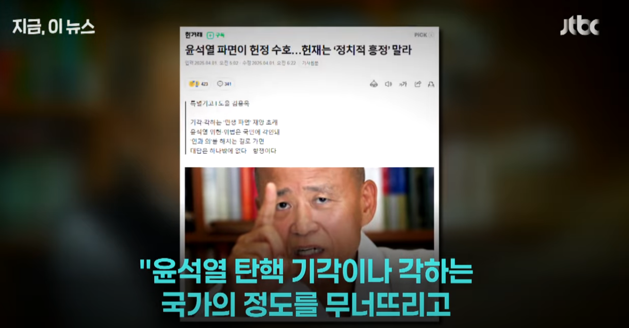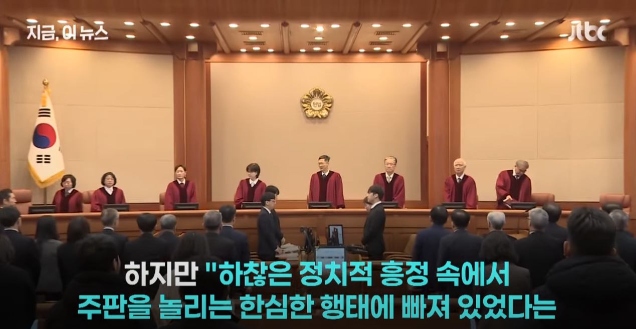 그는 이어 "너무도 상식적인 결론이 도출될 것이라 믿었기에 국민들은 헌재를 신뢰했다"며, 재판관들이 국민의 편에 서서 국가를 위기에서 구할 것이라 기대했지만, 만약 정치적 흥정이 개입된다면 이는 역사적 죄악이 될 것"이라고 경고했습니다.