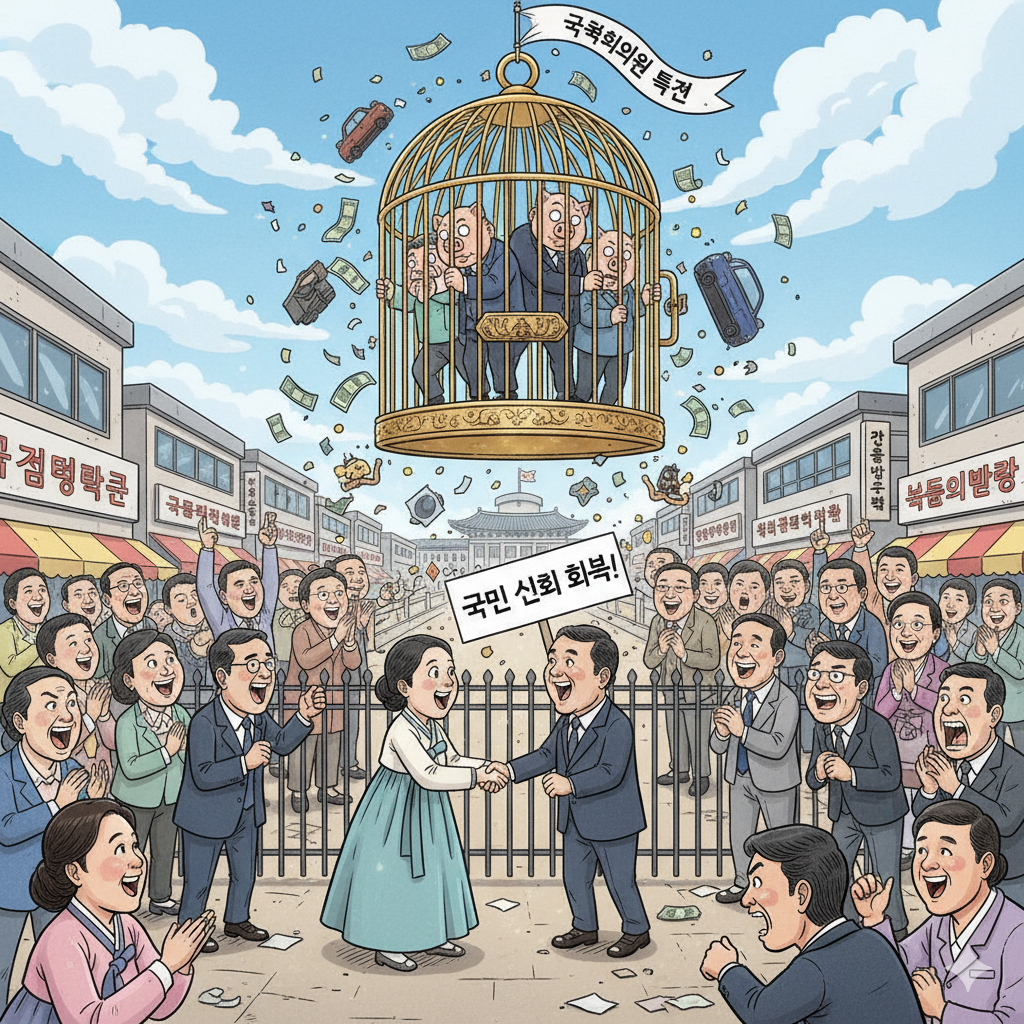 국회의원 특권, 당장 줄여야 합니다. 필요 없는 수당, 보너스, 혜택 없애고, 진짜 국민을 위한 일에 돈 쓰도록 바꿔야지요. 그게 바로 신뢰 회복의 첫 걸음 아닐까요?